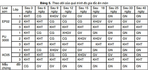 4.3. Hiệu quả chống ăn mòn của sơn phủ khi thí nghiệm bằng phương pháp gia tốc (theo phương pháp gia tốc NT Build 356)